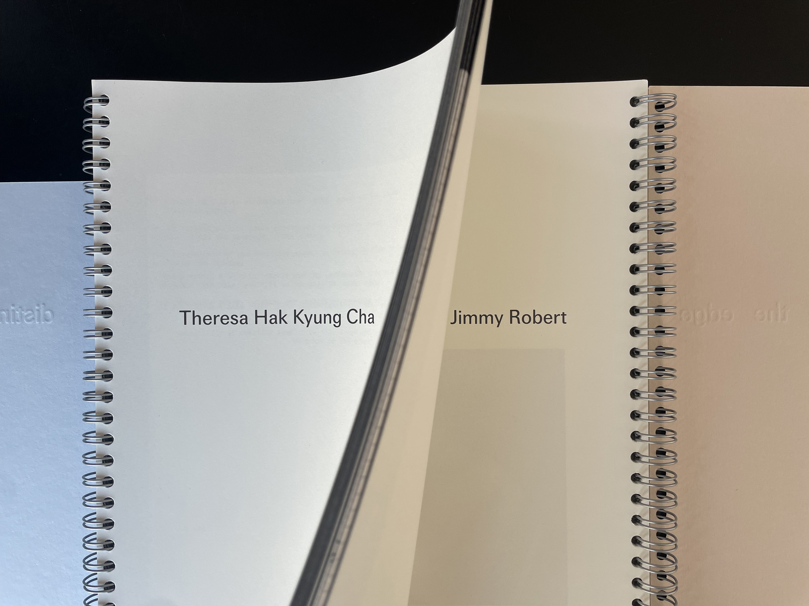 flipping through pages keeping a record of time: Theresa Hak Kyung Cha & Jimmy Robert curated by Jacob Korczynski at Participant Inc., 6 September – 3 November, 2024, supported by a Fall 2020 Curatorial Research Fellowship from The Andy Warhol Foundation for the Visual Arts.